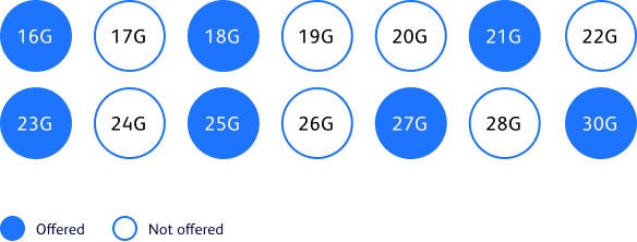 Streamlined needle lengths and gauges, which may help with:1,2